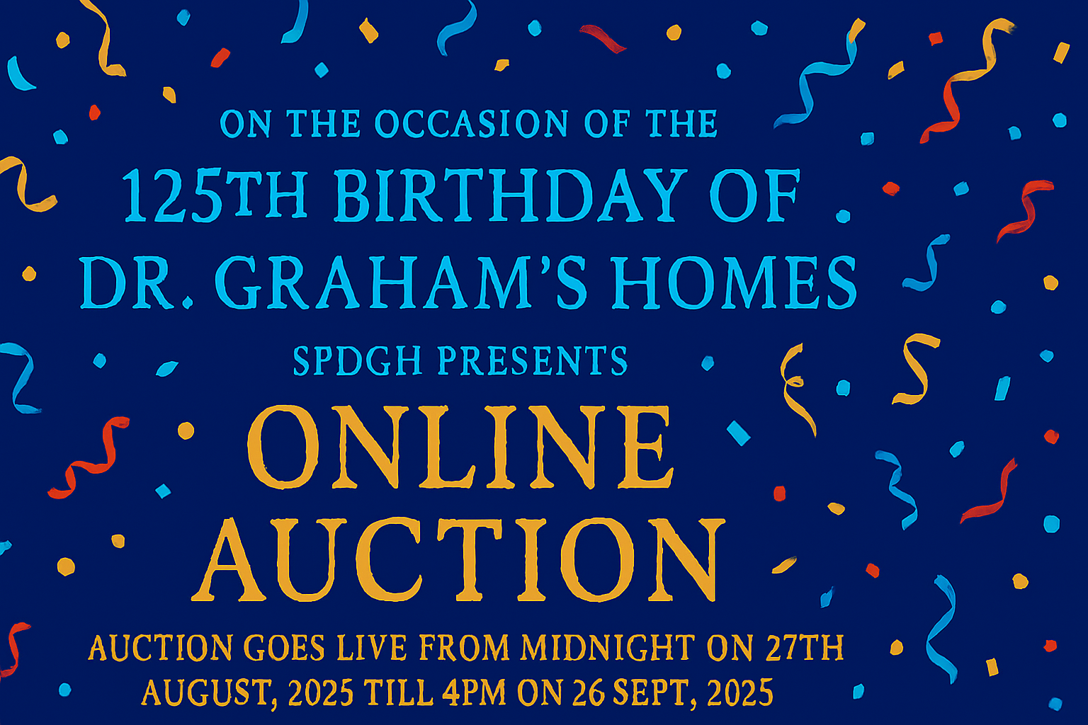 This auction is part of the 125th birthday celebration of Dr. Graham’s Homes. Please participate with joy, generosity, and reverence. - Banking Details